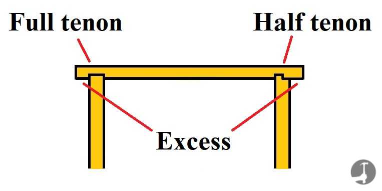 Sometimes the housing is the same thickness as the leg, other times only half the thickness is removed and the top of the lining leg has a half tenon that slots into the head.